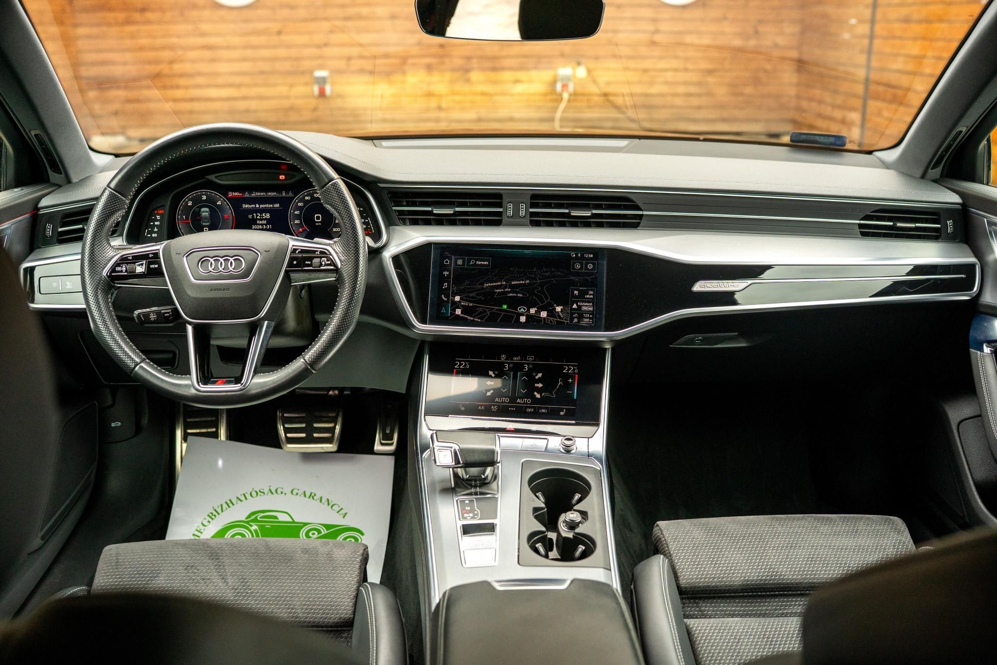 —– FINANSZÍROZÁSI AKCIÓ 8,5% THM-től! FORINT ALAPON FIX KAMATOZÁSSAL!–AUDI, A6, 2X S-LINE KIVITEL, limusine, 2967ccm, DIESEL, automata, 1 ÉV GARANCIÁVAL, MAGYARORSZÁGON ÚJONNAN FORGALOMBA HELYEZETT, FEKETE fényezéssel és 19 colos alufelnikkel eladó. Motorja egy 286 lóerős DIESEL-hibrid mild/lágy hibrid erőforrás amit automata váltóval szereltek. Biztonságos és kényelmes utazást biztosít a táblafelismerő, távolsági fényszóró asszisztens, LED, holttérfigyelő, keresztforgalom figyelő, és a sávtartó. Télen kényelmes utazást biztosít az ülésfűtés elöl-hátul, illetve személyre szabottan állíthatjuk és memorizálhatjuk a vezető ülés beállításait. Vezeték nélküli TELEFONTÖLTÉS, illetve vezeték segítségével Apple CarPlay, illetve Android Auto csatlakozási lehetőséggel tudjuk tükrözni a telefonunkat az autó kijelzőjére. A családi csomag része az ISOFIX gyerekülést rögzítő pont. A Virtual Cockpit pedig a felszereltség részét képzi, melynek stílusa és beállításai személyre szabhatóak. A PreSence koccanásgátló a biztonsági extrák egyik alappillére, hiszen az autó elejében található radar folyamatosan figyeli az előttünk haladó forgalmat, és képes magától fékezni az autó, ha nem figyelünk az előttünk megálló járműre. De képes az autó a PROPilot rendszernek köszönhetően magától akár önvezetni is részben. A külső dizájn nem hétköznapi, hiszen ez egy s-line kivitel. Az autó végig vezetett szervizkönyvvel rendelkezik. 2 db gyári kulccsal várja új szerető gazdáját. TOVÁBBÁ állítható légrugós futóművel, illetve Soft Close csillapított ajtózárással is rendelkezik.