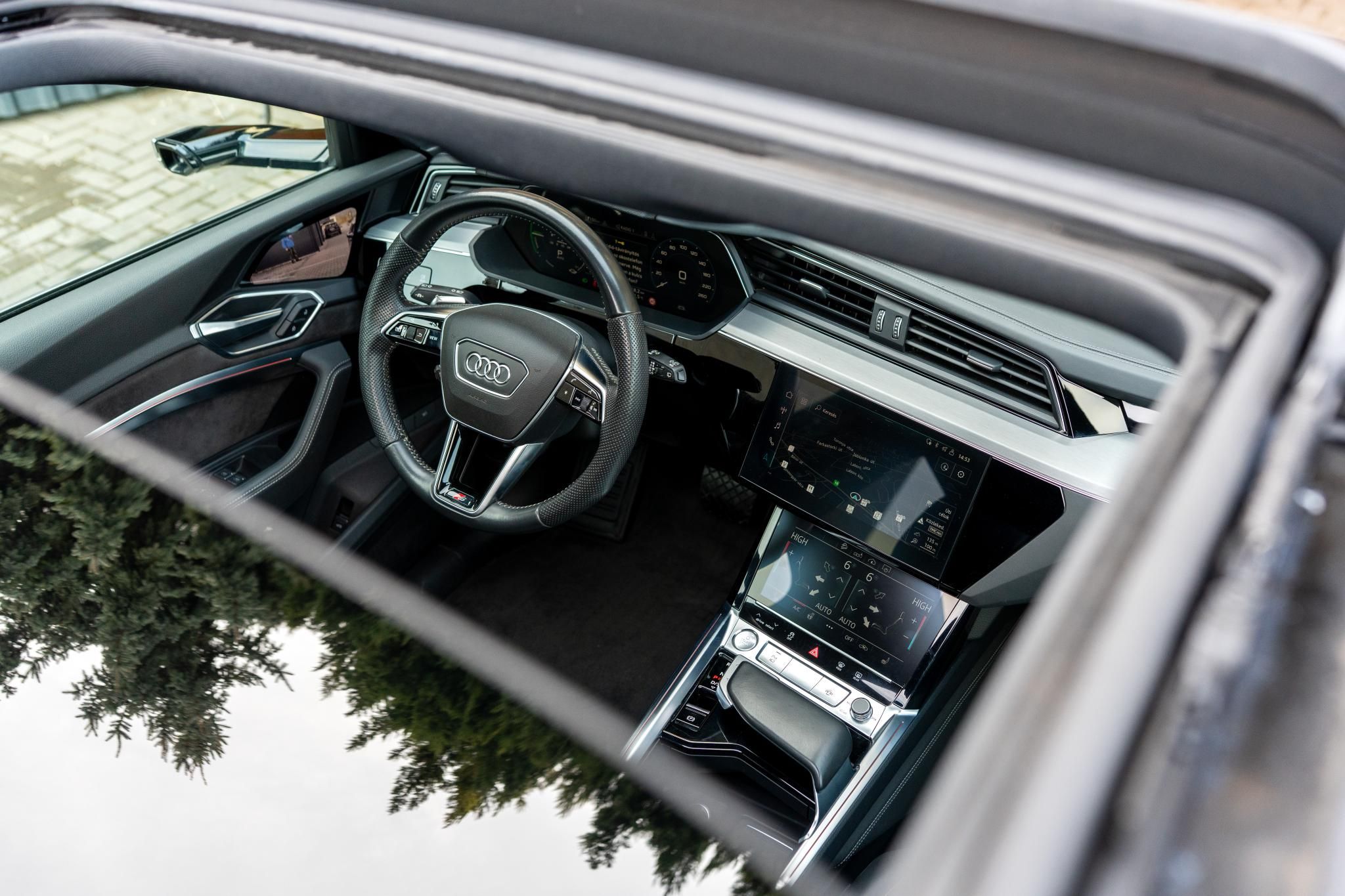 —–FINANSZÍROZÁSI AKCIÓ 8,5% THM-től! FORINT ALAPON FIX KAMATOZÁSSAL!—– ÓCEÁNKÉK metál fényezéssel eladó AUDI E-TRON 55, S-LINE – ADVANCED felszereltséggel. Fokozatmentes automata váltón keresztül hajtja az első, illetve hátsó kerekeket (QUATTRO). A főbb extrák között megtalálható a SOFT CLOSE, VIRTUÁLIS KÜLSŐ VISSZAPILLANTÓ TÜKRÖK — ( virtual exterior mirrors ) — ambient light belső hangulatvilágítás, nyitható napfénytető, elektromos ülésállítás memorizálható funkcióval, üdvözlőfény, ELEKTROMOS CSOMAGTÉRAJTÓ, ADAPTÍV FUTÓMŰ, Led fényszóró, digitális 4 zónás klíma, ülésfűtés az első üléseken, kormányfűtés, tempomat, sávelhagyást jelző rendszer. A tolatást RADAROK, és parkolást 360 fokos tolatókamera segíti, a fedélzeti multimedia természetesen támogatja a Bluetooth kapcsolatot, Android Auto és Apple Car play szolgáltatást. A biztonságról 6 db légzsák gondoskodik, melyek közül a jobb első kikapcsolható, így gyerekülés is rögzíthető ide. A hátsó üléseken ISOFIX rögzítési pontok vannak kialakítva. Az autó végig vezetett szervizkönyvvel, 2db gyári kulcsával, 2 db gyári töltőjével, várja új gazdáját 1 év garanciával.—–Megtekintés előtt, időpont egyeztetés szükséges, köszönjük!