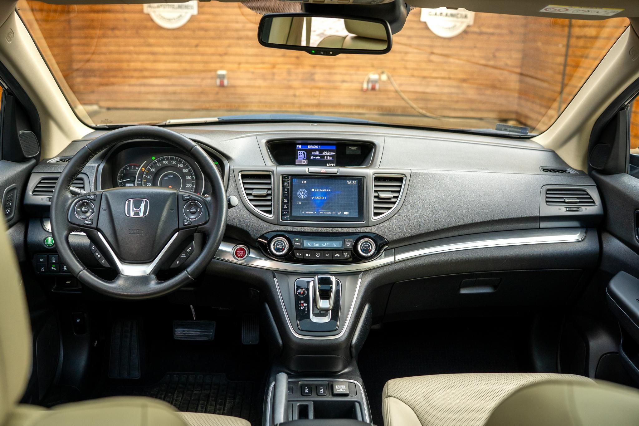 —–FINANSZÍROZÁSI AKCIÓ 8,5% THM-től! FORINT ALAPON FIX KAMATOZÁSSAL!—–1 ÉV AJÁNDÉK GARANCIÁVAL, világos barna metál fényezéssel és bőr belsővel Honda CR-V eladó. Motorja egy 160 lóerős dízel erőforrás amit egy F1 karokkal is vezérelhető automata váltóval szereltek, és ÖSSZKERÉK meghajtással. Kényelmi extrái közül érdemes még megemlíteni az elektromosan kezelhető tükröket, két elős elektromos ülésállítást, motoros csomagtérajtó, keylessgo nyitás-zárás-inditási rendszer, szervó és multikormányt. Vezetés támogató rendszerei a távolságtartó tempomat, tolatóradarok elöl-hátul+kamera, holttérfigyelő, sávtartó rendszer. A gyerek csomag része a 3db isofix gyerekülés rögzítési pont kialakítása és az ablaksötétítés. A biztonsági extrák között megtalálható az abs, menetstabilizátor, kipörgés gátló, guminyomás figyelő és a légzsák rendszer. A központi szórakoztató egység része a multifunkciós média egység, bluetooth-os telefon csatlakozási lehetőséggel. Az autó 2 db gyári kulccsal várja új tulajdonosát