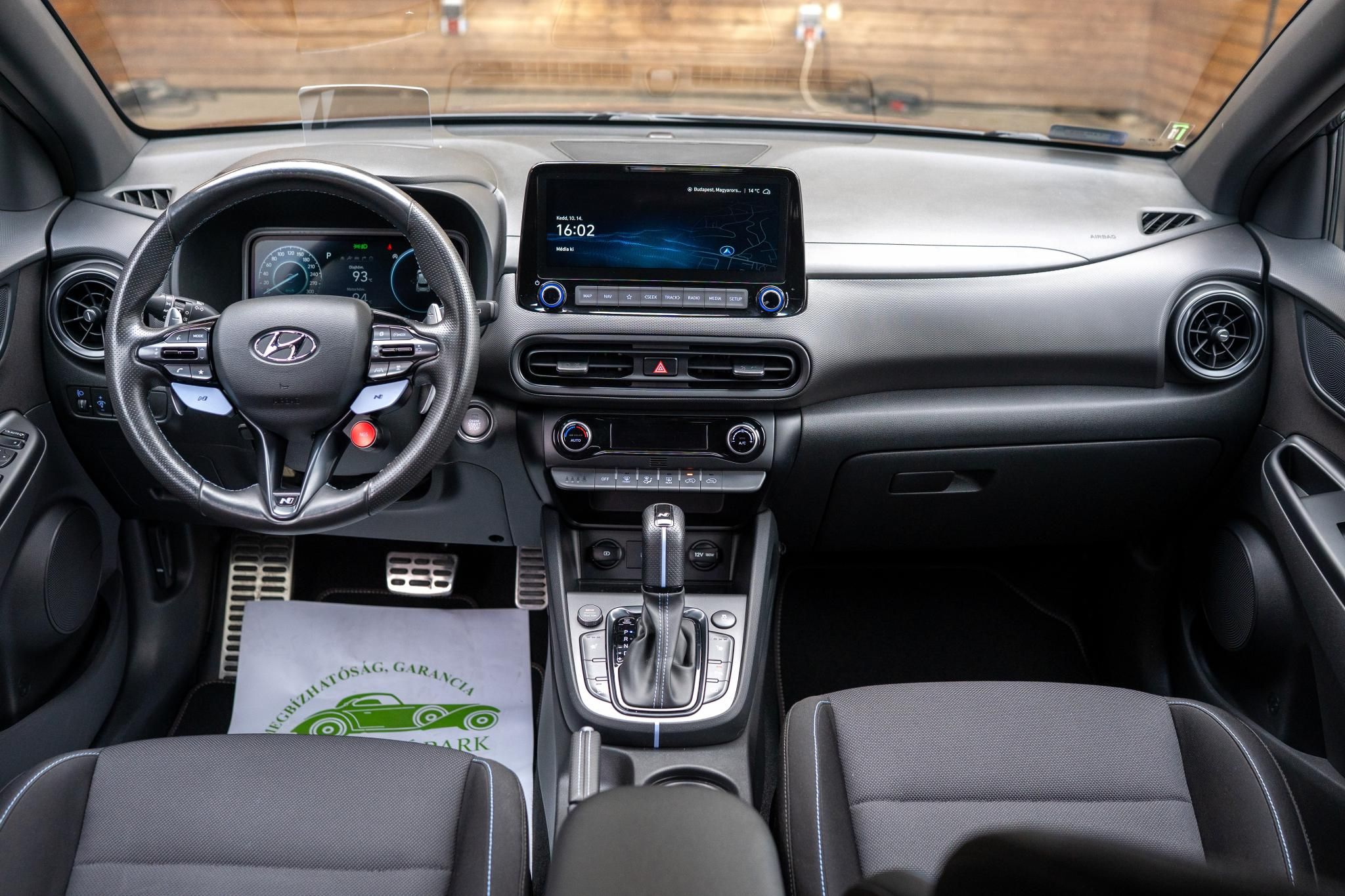 —–FINANSZÍROZÁSI AKCIÓ 8,5% THM-től! FORINT ALAPON FIX KAMATOZÁSSAL!—-FRISSEN ELVÉGZETT ÉVES SZERVIZZEL!—–HYUNDAI KONA N AUTOMATA, 1998ccm, benzines, automata, 2027.02-IG ÉRVÉNYES GYÁRI GARANCIÁVAL, 360 PONTOS FÜGGETLEN ÁLLAPOTFELMÉRÉSSEL, 2028-ig érvényes műszakival, 360 PONTOS FÜGGETLEN ÁLLAPOTFELMÉRÉSSEL, MAGYARORSZÁGON ÚJONNAN FORGALOMBA HELYEZETT, törésmentes előélettel, fekete szövet belsővel, sötét szürke fényezéssel és 19 colos alufelnikkel eladó. Motorja egy 280 lóerős benzines erőforrás, amit egy F1 váltókarokkal is kezelhető automata váltóval szereltek. Kényelmi extrái között megtalálható a digitális klíma, ülésfűtés, elektromosan kezelhető tükrök, automata ledes fényszórók, és a keyless go kulcs nélküli rendszer. A vezetést támogató rendszerek közül érdemes megemlíteni a távolság tartó tempomatot, tolató radarokat elöl-hátul + kamera rendszert, head up display, holttérfigyelőt, vezetés mód választót, holttérfigyelő rendszert. A családi csomag része a kikapcsolható utaslégzsák és az isofix gyerekülés rögzítési pontok. További biztonsági extrák az abs, menetstabilizátor, kipörgés gátló és a légzsák rendszer. A központi szórakoztató egység része a multifunkciós média egység, érintés vezérléssel, KRELL prémium hangrendszerrel, navigációval, valamint bluetooth-os telefon csatlakozási funkcióval, és telefontükrözéssel. Az autó kevés megtett kilométerrel, és 2db kulccsal várja új tulajdonosát. 2025.12 HÓIG vezetett a szervizkönyv