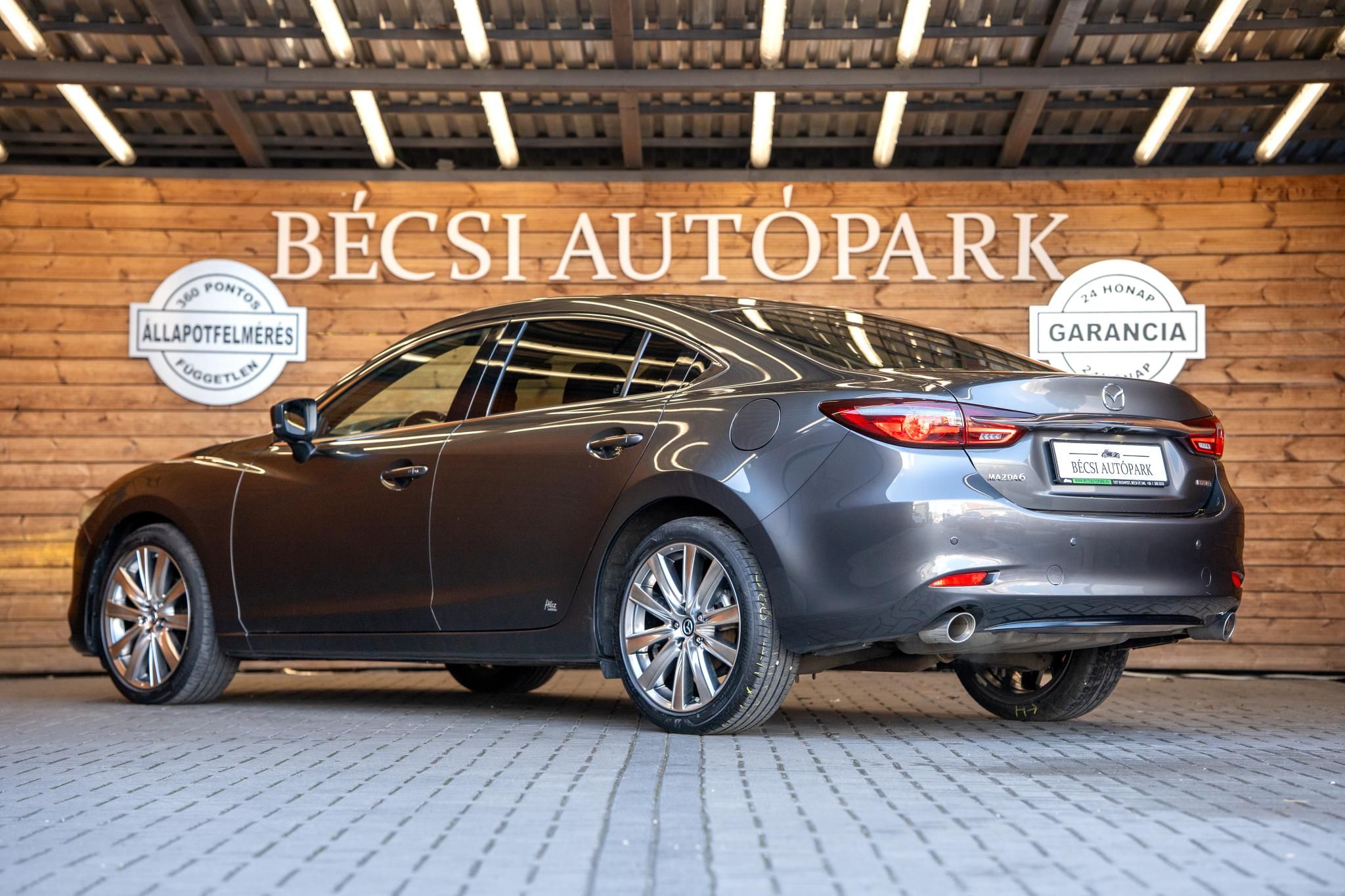—–FINANSZÍROZÁSI AKCIÓ 8,5% THM-től! FORINT ALAPON FIX KAMATOZÁSSAL!—– GRAFIT SZÜRKE metál fényezéssel eladó Mazda6 szedán 2.5 skyaktiv benzines változatban TAKUMI plus felszereltséggel. A benzines erőforrás 194 Le-s, ami egy 8 fokozatú automata váltón keresztül hajtja az első kerekeket. A főbb extrák között megtalálható a LED fényszóró, 2 zónás digitális klíma, ülésfűtés és szellőztetés az első üléseken, sötétbarna bőr ülések, ADAPTÍV tempomat, sávelhagyást jelző rendszer. A tolatást és parkolást 360 FOKOS tolatókamera segíti, a fedélzeti multimedia természetesen támogatja a Bluetooth kapcsolatot. A biztonságról 6 db légzsák gondoskodik, melyek közül a jobb első kikapcsolható, így gyerekülés is rögzíthető ide. A hátsó üléseken ISOFIX rögzítési pontok vannak kialakítva. TOVÁBBI KIEMELT EXTRÁI: HOLTTÉRFIGYELŐ, HEAD UP display, ELEKTROMOS CSOMAGTÉRAJTÓ, BOSE HANGRENDSZER, AUTOMATIKUSAN SÖTÉTEDŐ BELSŐ ÉS KÜLSŐ TÜKÖR, AudoHold, keylessgo, SOS GOMB, FABETÉT, NAPFÉNYTETŐ. Az autó végig vezetett szervizkönyvvel, 360 PONTOS FÜGGETLEN ÁLLAPOTFELMÉRÉSSEL, és 2db gyári kulcsával várja új gazdáját gyári garanciával.